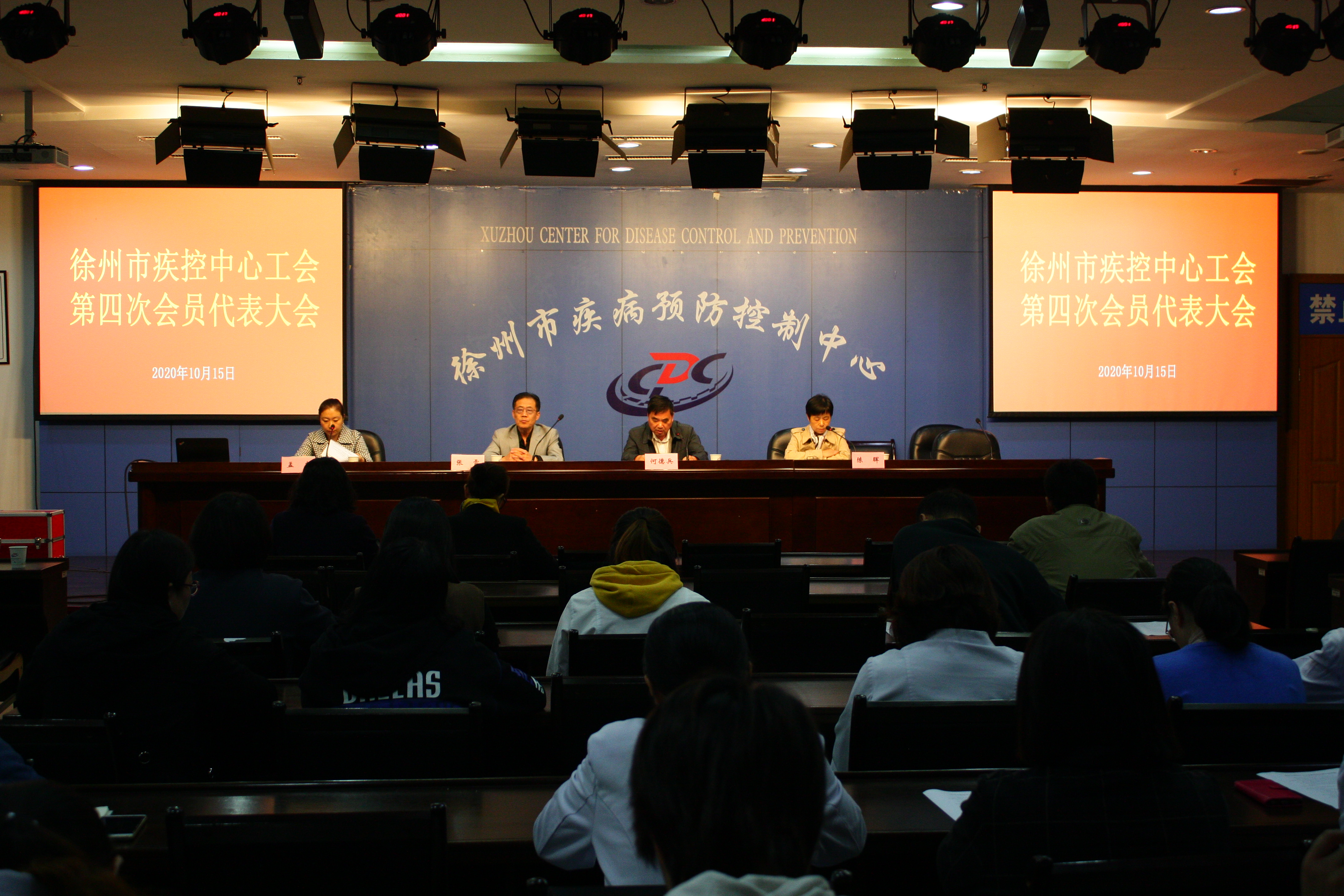 10月15日,徐州市疾控中心第四次工会会员代表大会在中心十二楼会议室隆重召开。市卫健委党委委员、工会主席何德兵同志、副主席陈晖同志出席会议,中心主任张雷同志发表讲话。