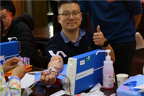 2月28日下午14时,参与献血的各个部门的干部职工准时来到现场,在血液中心工作人员指导下填写“无偿献血登记表”,井然有序地配合工作人员进行身体检查、抽取血液、化验血型等各个流程的检查。随着一条条输血管里血液的流动,承载着生命能量的血液被装入“生命袋”,一袋袋红色暖流汇聚成巨大能量,为有需要的人送去希望。